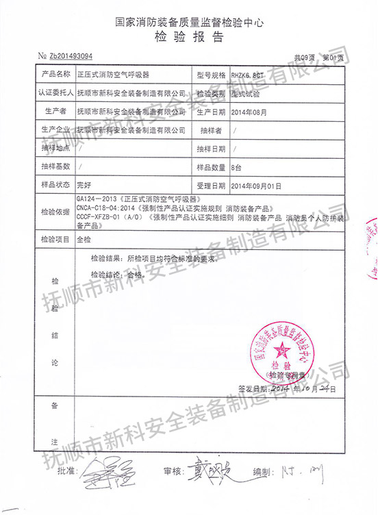 下一篇:RHZK9CT正壓式消防空氣呼吸器-檢驗報告