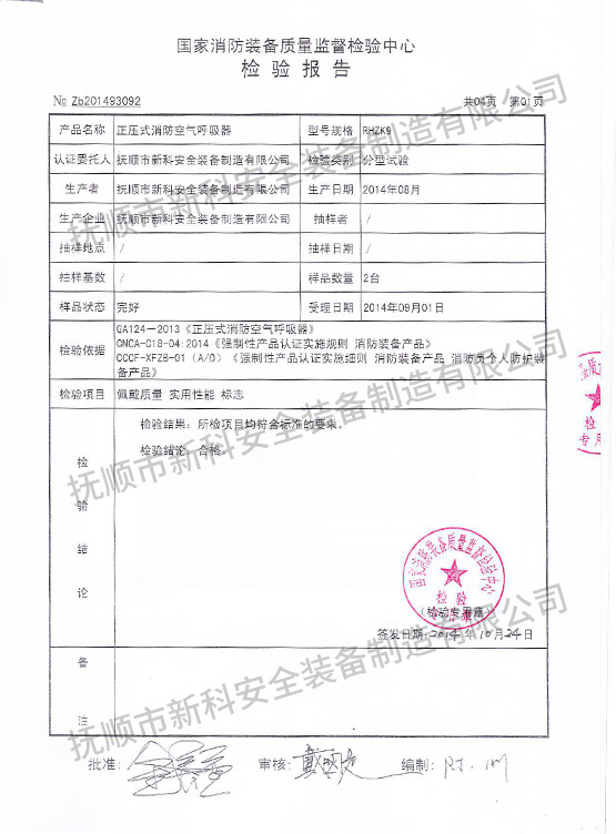 下一篇:RHZYN240型正壓式消防氧氣呼吸器-檢驗報告